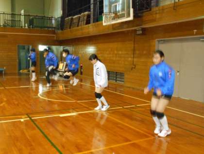 全体練習開始後は、まずトレーニングから始まりました。ジャンプしてダッシュ!筋力と瞬発力がつきそうです。