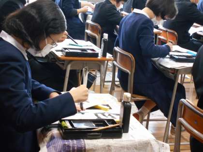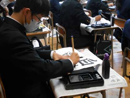 一人一人、お手本を見ながら丁寧に書き初めをしていました。冬休み中の練習の成果を出し切れるよう、心を落ち着けながら書き初めに臨む姿も見られました。完成作品が楽しみです。