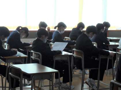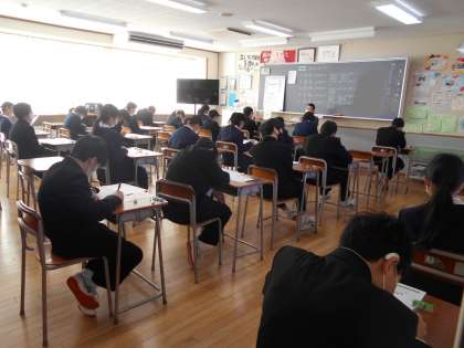 1年生は、1限から5限まで、冬休み明けテストに取り組んでいます。これまでの復習として冬休みに取り組んだ内容がどこまで理解できていたかを確かめられたでしょうか。