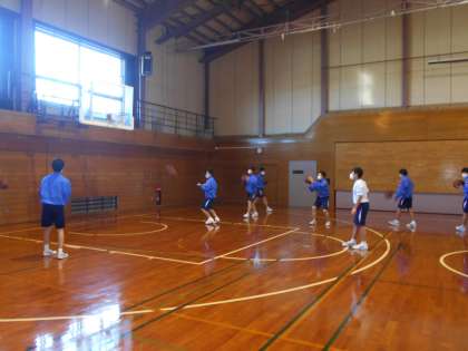 男子保健体育はバスケットボールの授業でした。4グループに分かれてシュート練習です。立つ位置、腕の伸ばし方、手首の使い方。いろいろなところを意識しながら練習をしました。