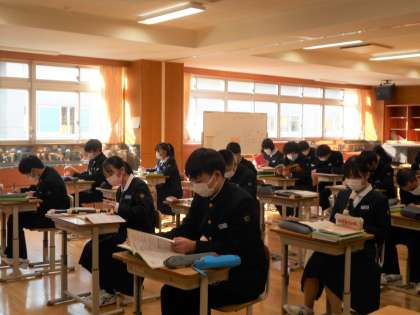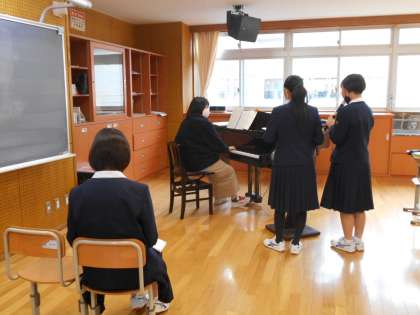 音楽の授業では、アルトリコーダーの実技テストがありました。ポイントは正しい指使い、タンギング等6項目あり、緊張しながらも頑張りました。
