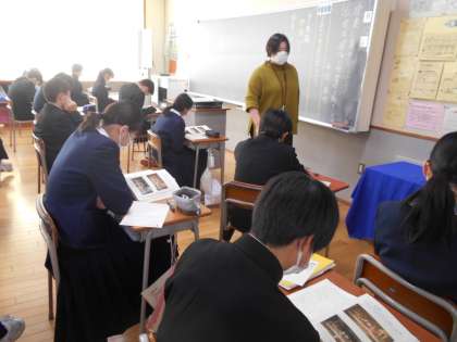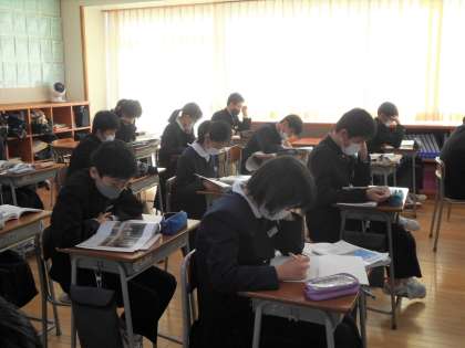 国語の授業では、評論文「君は『最後の晩餐』を知っているか」を音声教材で聞いた後、筆者の評価のポイントについて考えました。集中して聞いていました。