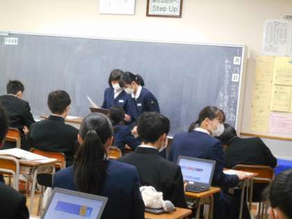 2学期後半から進めている平和学習のOUTPUT版として、自分たちで課題を決め、調べたこと、考えたことをレポートにまとめてきました。今日は、来週のクラス発表会に向け、テーマ別に編成したグループ毎に発表準備をしていました。