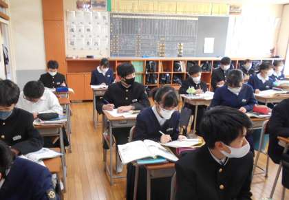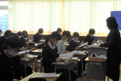 英語の授業では、本文についてTorF形式で内容の確認をしました。家でもう一度本文を音読すると、内容の確認ができてとてもよいと思います。