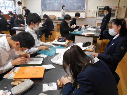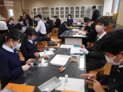 美術の授業では、篆刻に取り組んでいます。よい卒業記念品になりそうです。
