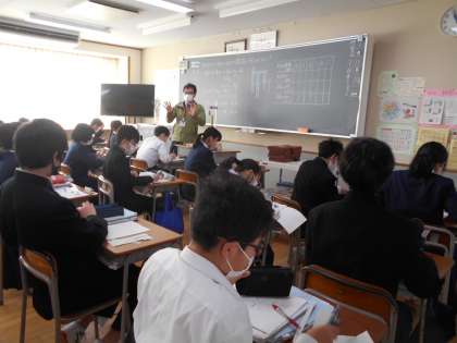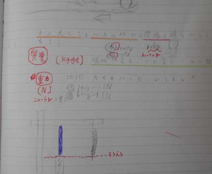 理科の授業では、教室でミニ実験を見せてもらいながら、力の大きさとばねの関係を明らかにしていきました。
