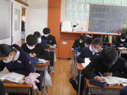 国語の授業では、「走れメロス」の本文を読み、あらすじをつかむことに取り組みました。