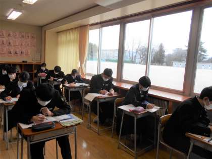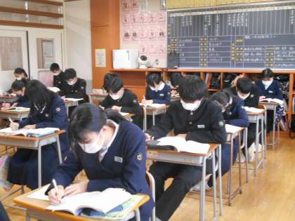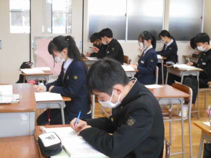 別のクラスの数学の授業でも、たくさんの問題に挑戦し、真剣に向き合っていました。分からないところを先生や友達に質問して、これからも解決していきましょう。頑張れ、3年生!