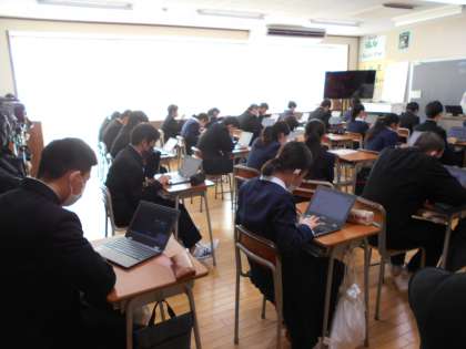 総合の時間は、京都タクシー班別学習の事前学習を行いました。23日(月)に引き続き、冬休みの課題として一人一人が京都の文化や建造物等についてまとめたスライド等を参考にしながら個人課題を設定しました。クロームブックを活用しながら真剣な表情で考えていました。