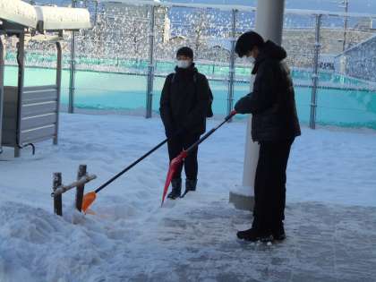 今日は2年3組が除雪を担当してくれました。生徒玄関前を中心に除雪をしてくれたお陰で、登校した生徒のみなさんはスムーズに校内に入ることができました。ありがとうございました。