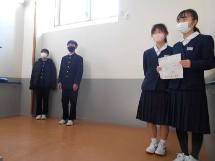 1学年生徒会では、今週月曜日から挨拶強化週間を行っています。終盤に入った今日は1年2組の担当でした。いつも以上に相手がさわやかになるような挨拶を心がけました。