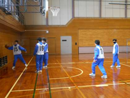 男子保健体育の授業では、バスケットボールに取り組んでいます。練習したピボットを意識しながらシュート練習をしました。