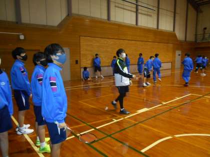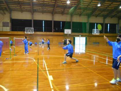 男子バドミントン部は、コートだけでなく、空きスペースを使って交代で練習をしました。
