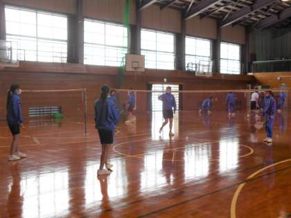 保健体育の授業では、全員バドミントンに取り組みました。けがのないように活動しましょう。