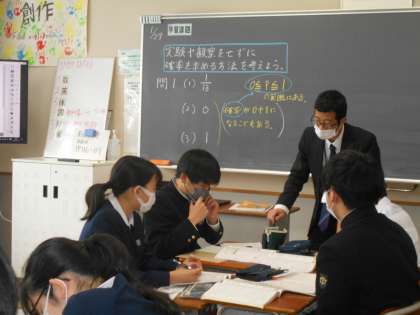 数学の授業では、実験や観察をせずに確率を求める方法をグループになって考えました。どんな方法があるのでしょうか。