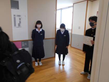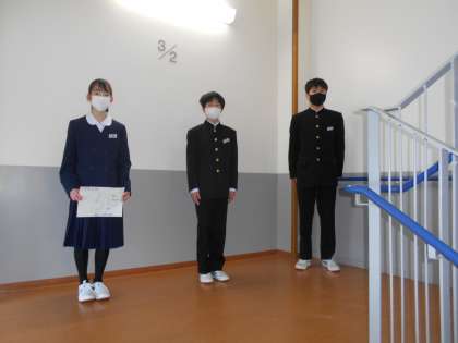 今日は、1年1組によって、挨拶強化週間の活動が行われました。各階段に、生活班ごとに分かれ、さわやかな挨拶をしてくれました。元気な挨拶が聞けると、元気が出ます。