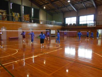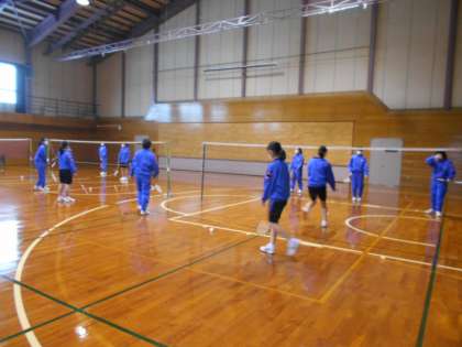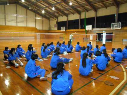 女子保健体育の授業では、バドミントンに取り組んでいます。途中練習ポイントを確認しながら取り組みました。