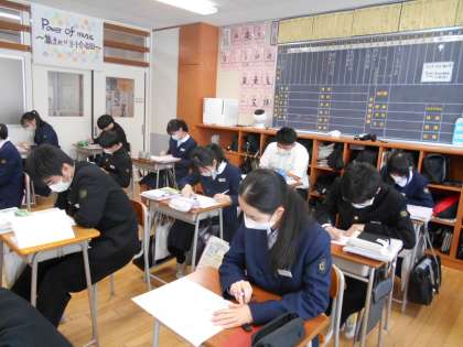 国語の授業では、ワークシートに取り組み、文章を読み、内容を捉える練習をしました。