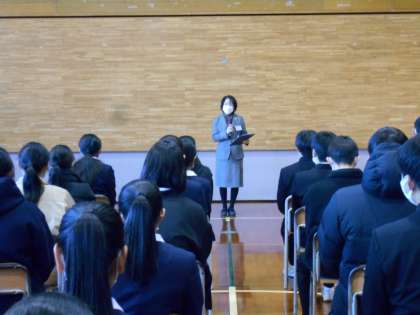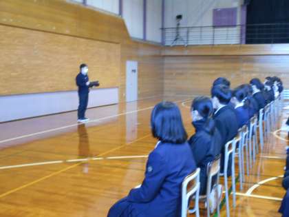 明日の私立入試に向けて、体育館で校長先生と学年主任から事前指導がありました。「不安になるのは、今まで頑張ってきた証拠。自分の力を発揮できるように頑張ってきてください。」といった話がありました。明日は体調にも気をつけて、落ち着いて試験に臨んできてください。
