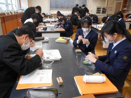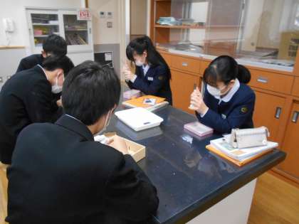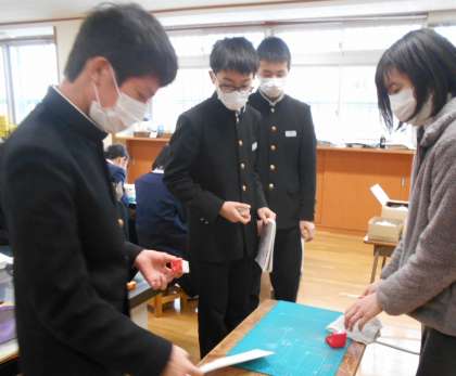 美術の授業で取り組んでいる篆刻の制作も終盤になりました。試し押しをして修正をしながら、納得のいく物になるように粘り強く取り組んでいました。