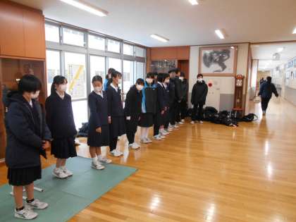 規律委員会による朝のあいさつ運動と文化委員会による朝の図書貸し出しの様子です。それぞれ活動に責任をもって取り組んでいます。あいさつ運動はボランティアの参加も多く、元気な朝になりました。