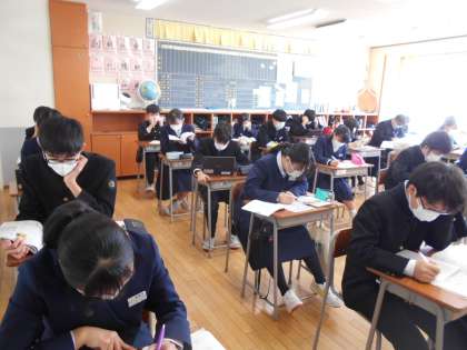 これまでの復習を、ワークやプリントを使って進めているクラスもありました。テストの見直しは何回もしておきましょう。