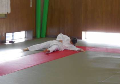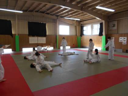 女子保健体育の授業では、前回り受け身とけさ固めの実技テストがありました。テストを通して、技の習得を進めています。
