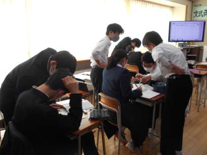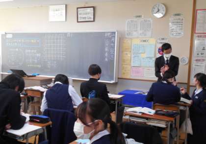 出た目の目の和が5にならない確率など、ある事柄が起こらない確率の求め方を勉強しました。中には、出た目の2つの積が偶数にならない確率の求め方を説明してくれた人もいました。しっかり理解ができていました。