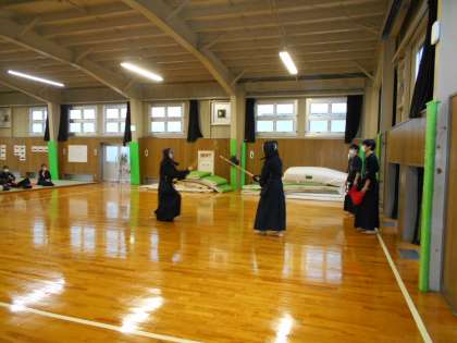 剣道部は、互いにアドバイスをしながら試合形式で練習をしました。