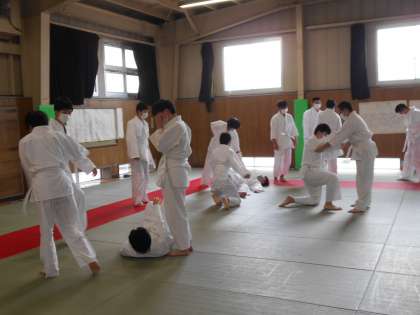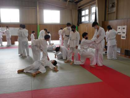 男子保健体育では柔道に取り組んでいます。実技書で足の運びを確認した後、実際に練習をしました。イメージ通りにできたでしょうか。