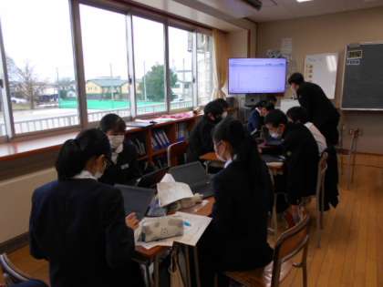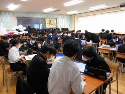 修学旅行での京都タクシー班別学習に向けて事前学習を進めています。テーマ別の班に分かれ、クロームブックや地図を見ながら見学場所を選んでいました。楽しそうに活動する様子が見られました。