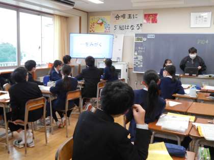 英語の授業では、これまでの復習をしました。中には、単語の問題27個中いくつ分かったかチャレンジする時間もあり、指折り数えていました。いくつ分かったのでしょうか。