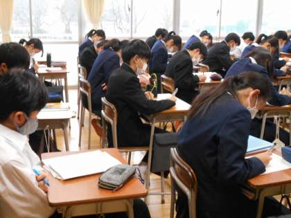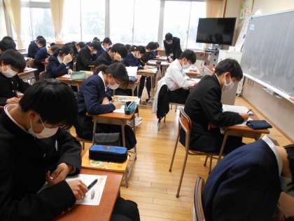 数学の授業では、練習問題に取り組みました。みんな集中して取り組んでおり、物音一つありませんでした。
