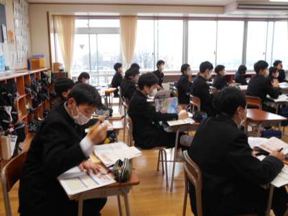 男子保健体育も保健分野でした。スポーツの多様な楽しみ方、豊かなスポーツライフの実現について考えました。