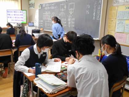 理科の授業では、電気スペシャルと題して、これまで勉強したことを復習しながら克服すべき自分の弱点を見つけました。分からないところはどんどん質問して、解決していきましょう。