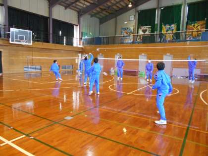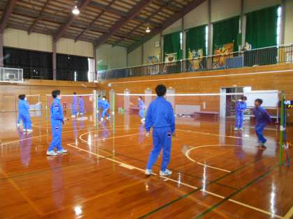 男子保健体育の授業でのバドミントンの様子です。大きく一歩踏み込んでレシーブをしたり、ラケットを大きく振りスマッシュを打ったりするなど、だんだん上手になってきました。