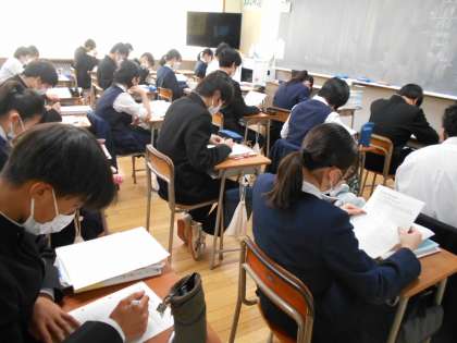 英語の授業では、SLA SLA READINGのワークシートを使って音読練習をしました。読みずらかった単語にアンダーラインをするなど、各自の練習ポイントを確認しました。