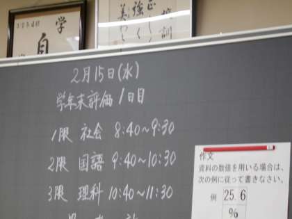 2月15日(水)3学年 学年末評価1日目(その1)