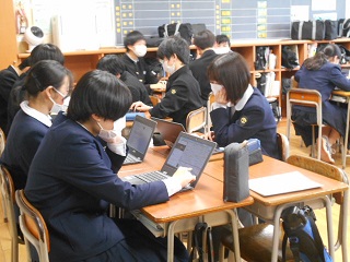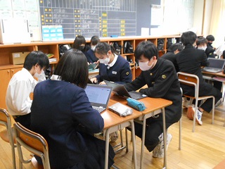 タクシー班別学習の計画を立てながら、疑問に思ったことをクロームブックのクラスルームに書き出し、学年で共有しながら進めていました。生徒たちは、様々な形で、クロームブックを活用しているようです。