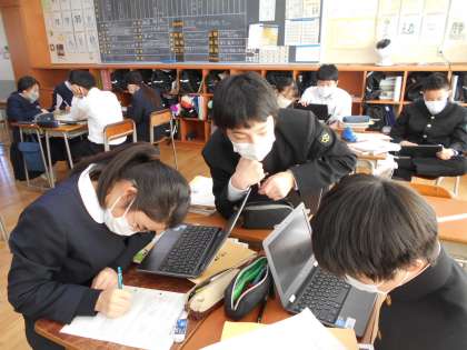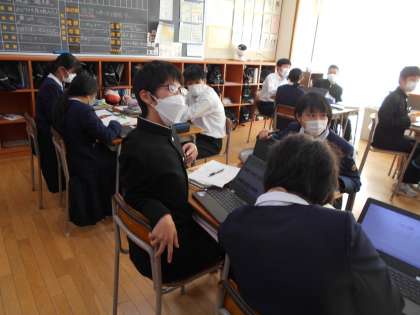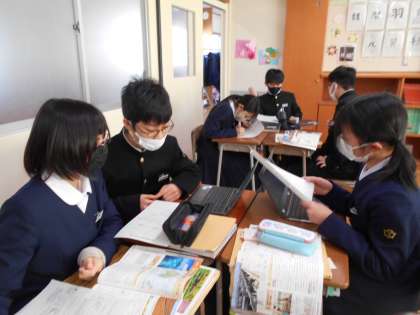 社会の授業では、多文化社会を維持、発展させるためにはどんなことができるのか、グループになって意見交換をしました。