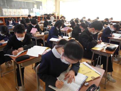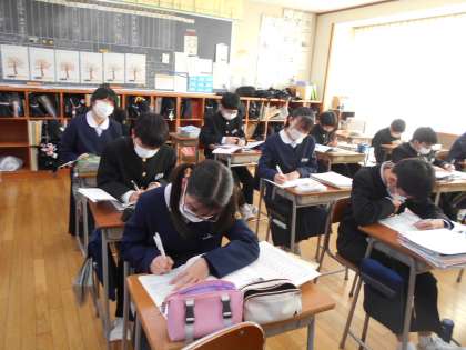 英語の授業でもこれまでの復習をしました。ワークシートに取り組み、苦手なところを発見することができました。学年末評価前に先生に質問をして解決するなどし、理解しておきましょう。