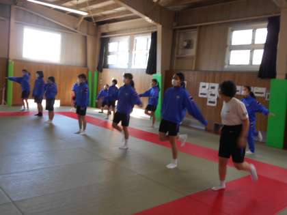 女子保健体育の授業はダンスでした。基本的なステップや動きをマスターし、来年度の運動会の団演技で生かしましょう。