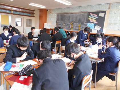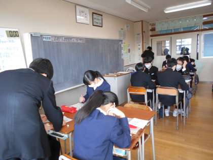 別のクラスでも理科の授業で復習プリントに取り組んでいました。分からないところは、ちょっと教えてもらうことで理解が進みます。遠慮しないで教えてもらいましょう。