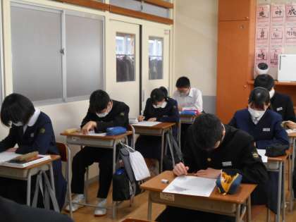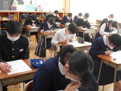 理科の授業の様子です。一問一問真剣に解いている様子に感心しました。3年生はみんな頑張っています!