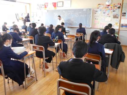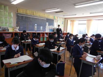 数学の授業では、学年末評価が返され復習しました。間違ったところを理解できるように、遠慮せずに質問をして、身に付けていきましょう。