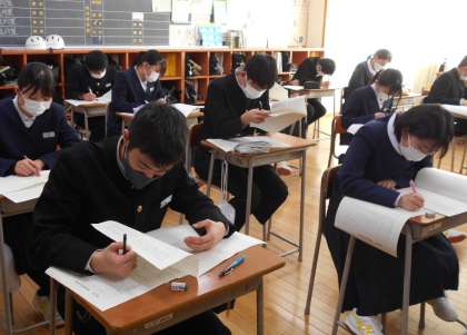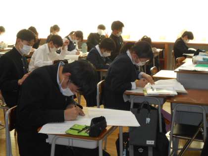 国語の授業の様子です。県立一般選抜前に、文法や古文で習ったことを確認しておきましょう。