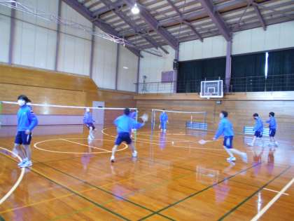 保健体育の様子です。バドミントンで勝敗によってコートを変えながら、たくさん試合をしました。