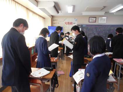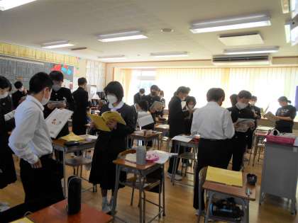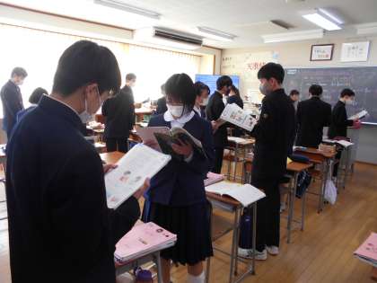 英語の授業では、ペアで本文の音読練習をしました。発音の分からない単語があったら、どんどん聞くようにアドバイスがありました。