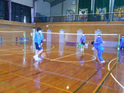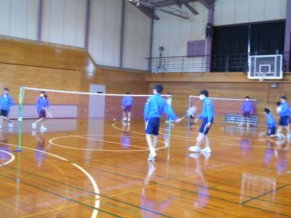保健体育の授業の様子です。試合形式で1時間取り組みました。どのペアも1点にこだわって、頑張りました。