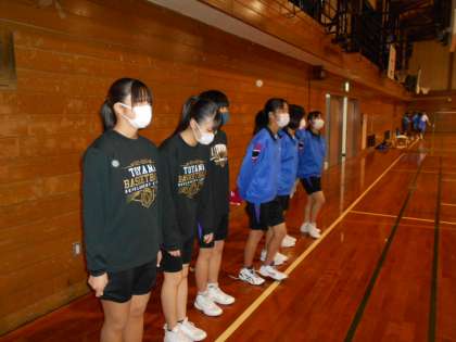 女子バスケットボール部の様子です。きちんとあいさつをしてからコートに入って練習をしました。大切なことです。